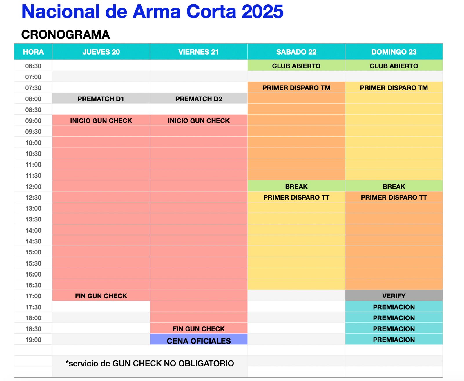 El pago de tiradores nacionales se toma solo por transferencia bancaria a la cuenta del club organizador. No se tomarán como válidos  pagos a otras cuentas.